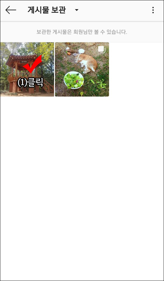 (1) 인스타그램 설정 -> 보관에서 보관 해제하고 싶은 피드(게시물) 클릭합니다.
