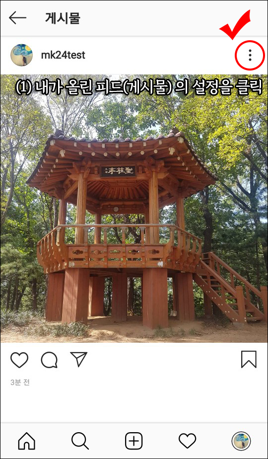 * 먼저, 보관하고 싶은 내 인스타그램 피드(게시물)을 클릭합니다.