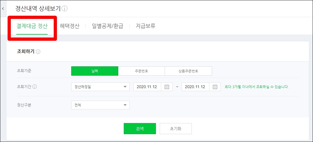 1) 정산 관리 > 정산 내역 상세 > 혜택 정산