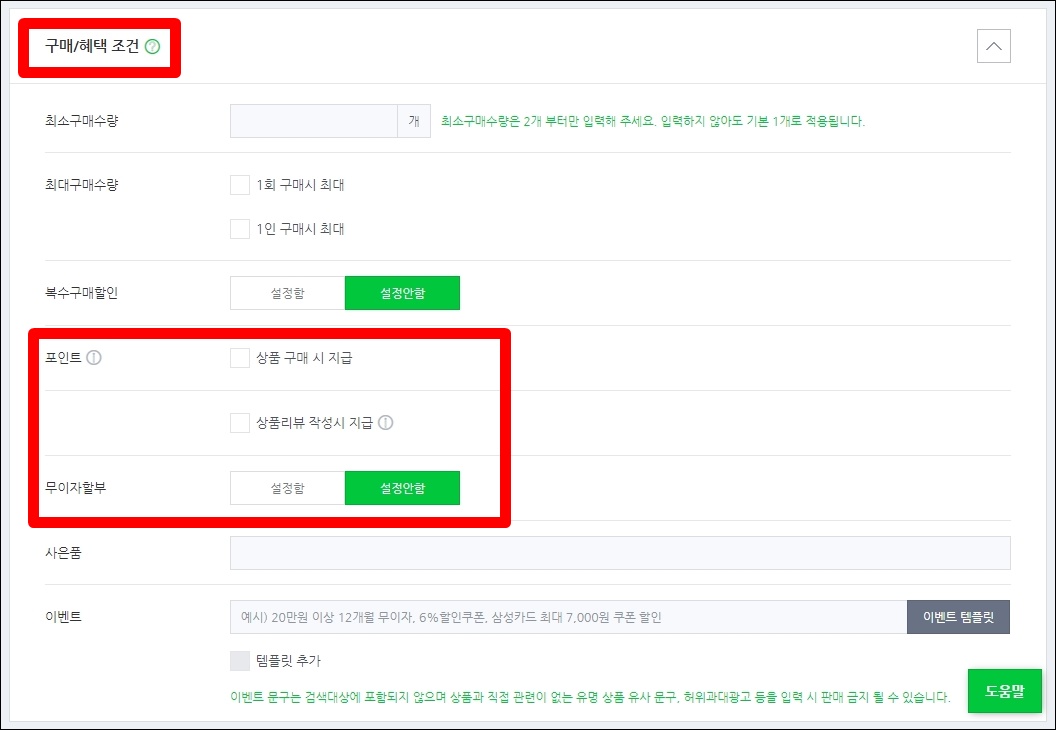 2. 상품 등록 > 구매/혜택 조건